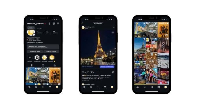 L'approche que j'utilise contient pour Crew Box est la communication digitale. Dans le secteur de l'événementiel, celle-ci est très mise en avant afin de visualiser les projets réalisés par les entreprises en charge de la régie des événements.
