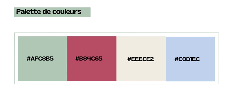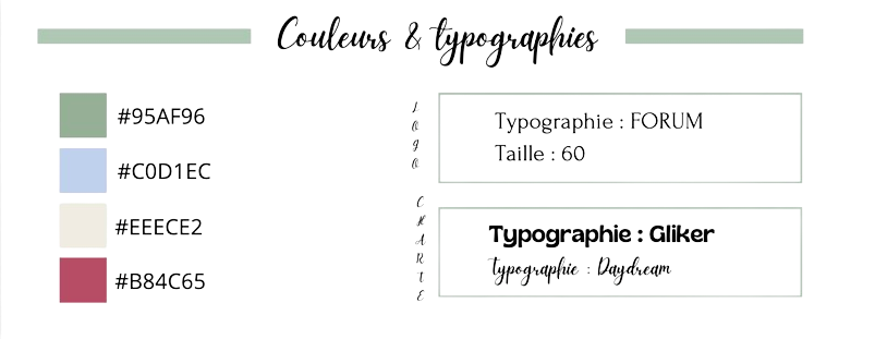 Enfin, vous trouverez ci-dessous ce qui complète ma charte graphique.